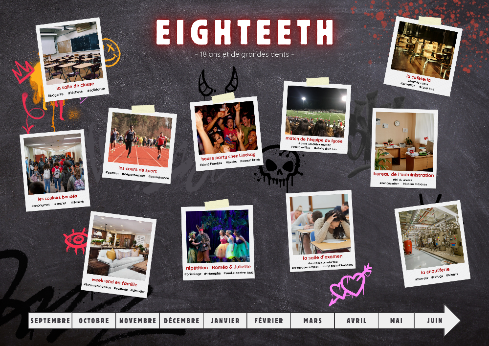 Ce jeu suit un groupe de lycéens·nes tout le long de l’année de leurs 18 ans. Nous explorerons leurs relations et l’évolution de leur nature monstrueuse.
